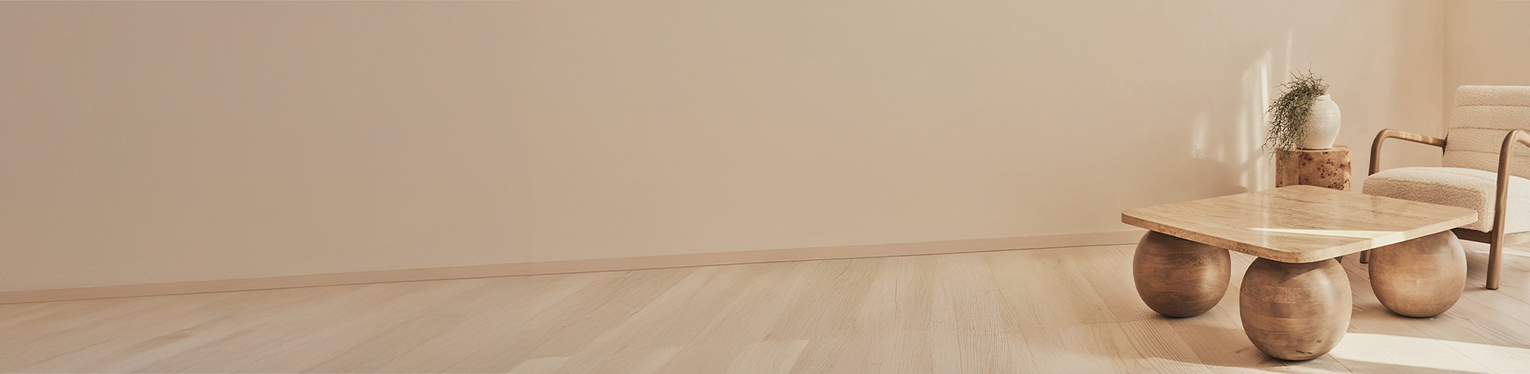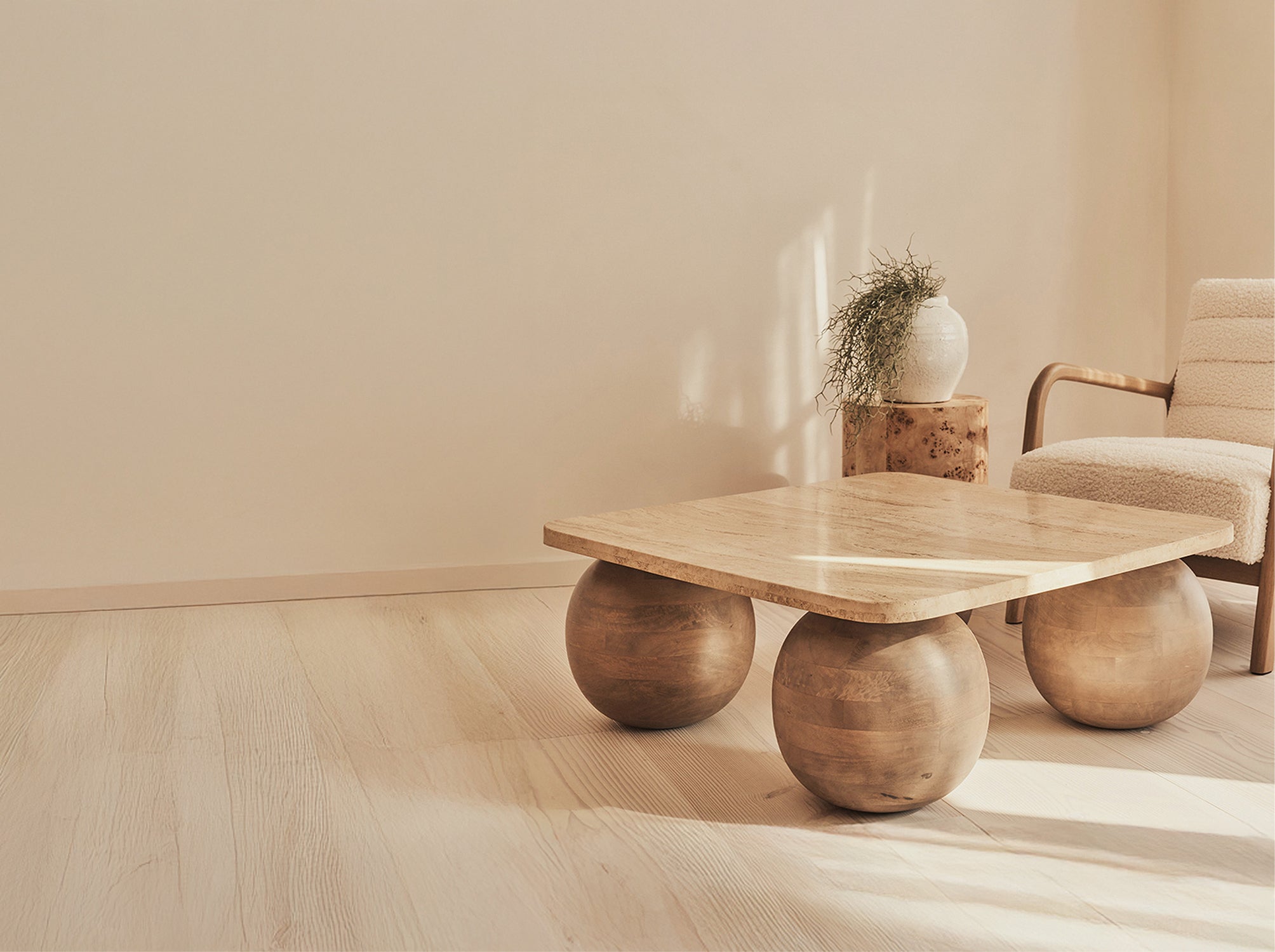 Beige Travertine Square Warm Wood Premium Coffee Table