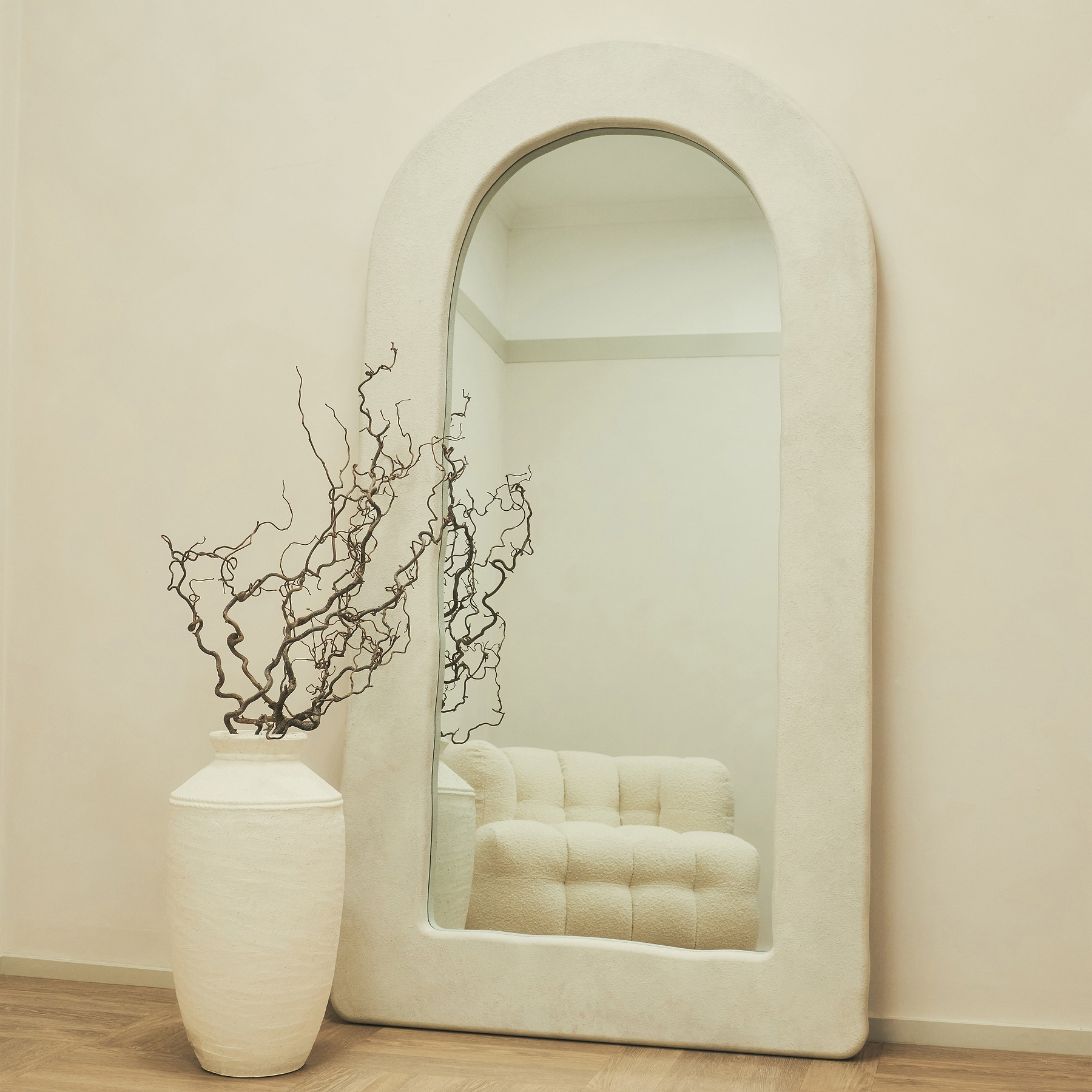 Our much-loved Alessia mirror is back by popular demand for those seeking sophistication with a bold edge. This full-length stone arch concrete-inspired mirror is a favourite for its striking design that perfectly blends contemporary elegance with timeless refinement. The Alessia’s architectural elegance transforms any room, bringing light and a statement piece to any space.