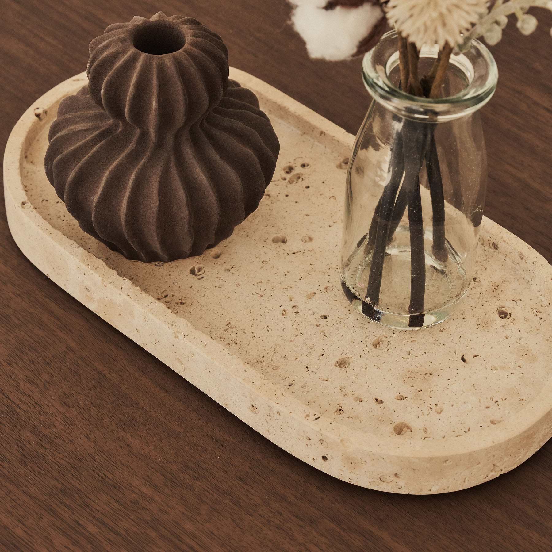 Cream Travertine Oval Decorative Tray
