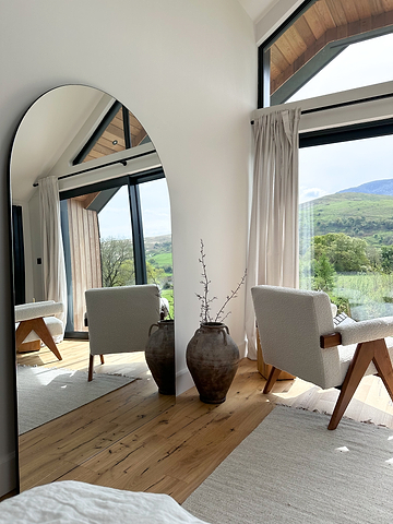 "I chose the Frameless Arched mirror for the bedroom. We have the most beautiful view of the Snowdonian mountains and I really wanted to make the most of this view and be able to see it from many different stand points in the bedroom. It works beautifully and I’m completely and utterly obsessed. Once I draw the curtains in the morning, I’ll sit with my morning coffee and admire the view of the mirror, the mountains and the mountains from the mirror!"THE THEO CONSOLE: