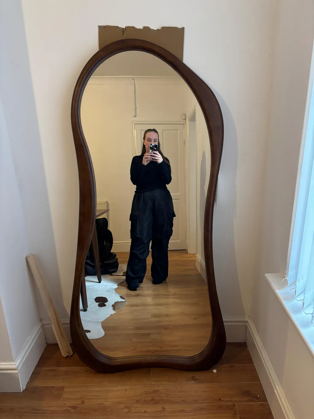Large Full Length Dark Wood Irregular Mirror 170cm x 85cm