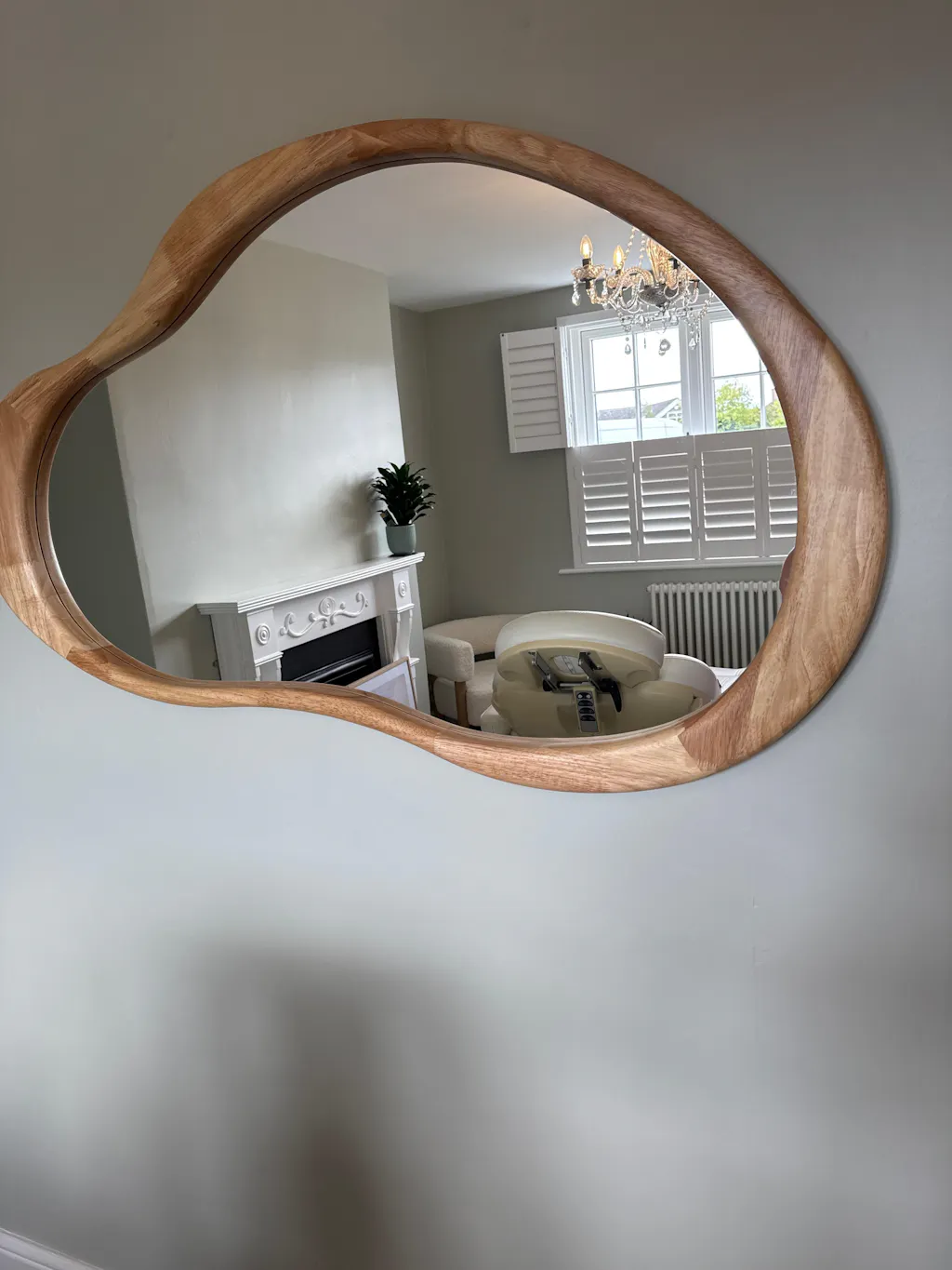 Large Overmantle Light Wood Irregular Mirror 130cm x 80cm