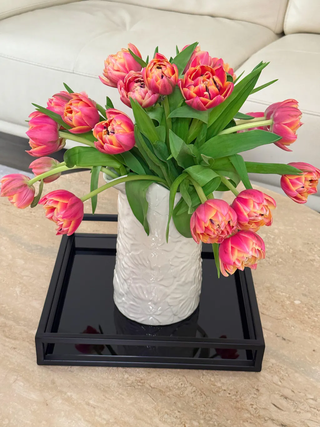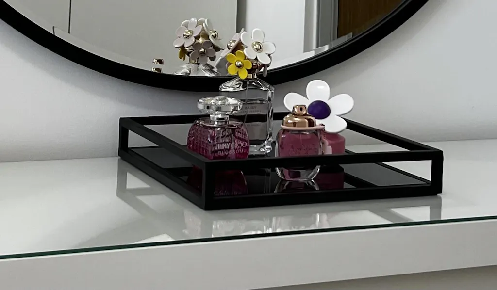 An innovative expansion to our iconic Brooklyn collection, this decorative tray is sleek, modern, and a perfect addition to any table with its easy-to-clean design. Complete with a matte black frame and tinted mirror surface, the tray also possesses rubber feet - a thoughtful addition to prevent any unwanted marks from occurring on your table