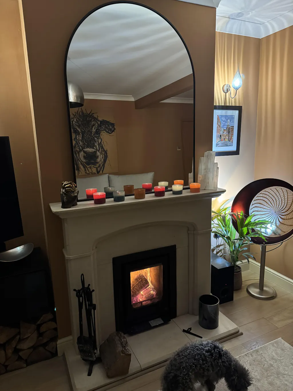 Black Arched Metal Overmantle Mirror 120cm x 90cm
