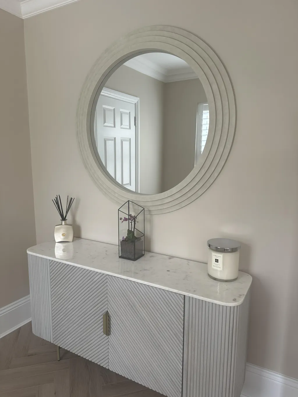 A charming and elegant wall mirror, the Luciana’s individuality does not impact its versatility, being a perfect addition to almost any interior it is placed in. Whether it be providing a sense of warmth and cosiness above your bed, or complimenting the muted colours of your bathroom, the Luciana fits right in.