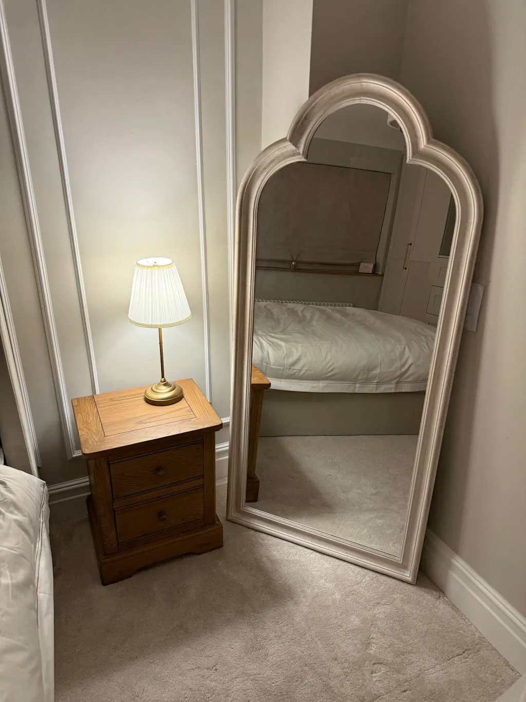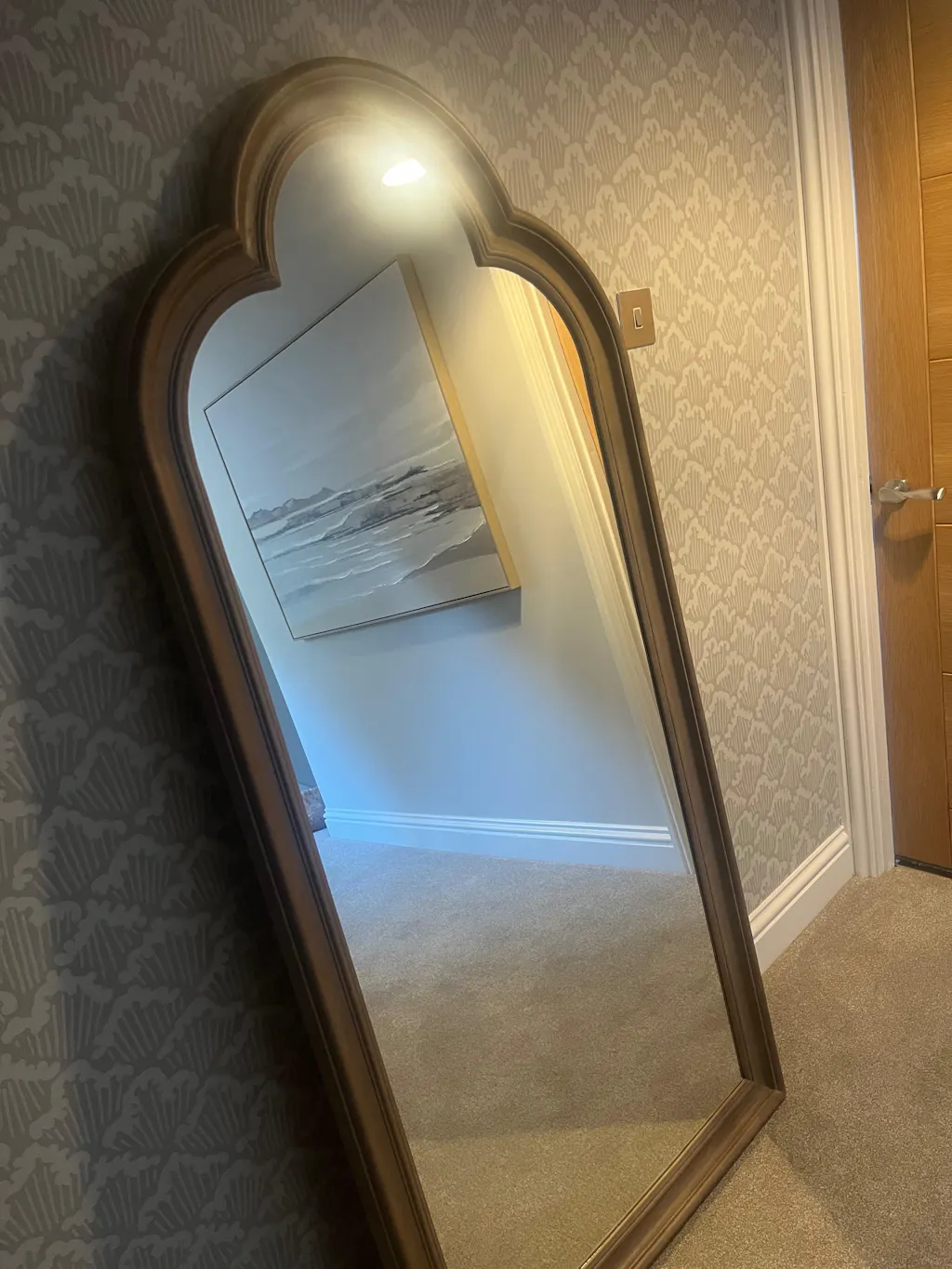 The Melilla Arched Full Length Mirror combines natural warmth with timeless design, featuring a beautifully crafted oak frame that complements any decor. At 170cm x 80cm, The Melilla provides a generous reflective surface, ideal for making spaces feel larger and more inviting. The high-quality craftsmanship and sturdy feel make it a standout piece, effortlessly enhancing both traditional and modern interiors. Easy to mount, Melilla adds an elegant touch to bedrooms, hallways, or living areas.