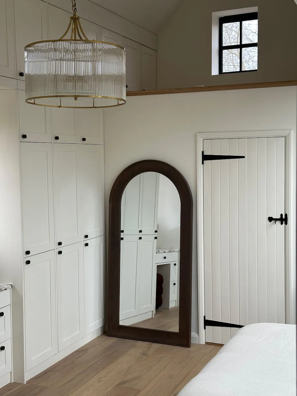 Discover timeless sophistication with this striking full-length mirror, featuring a rich dark wood finish paired with an exquisite arched wooden frame. At 180cm x 90cm, the Porta makes an impressive statement piece that elevates any space with understated luxury and contemporary style.