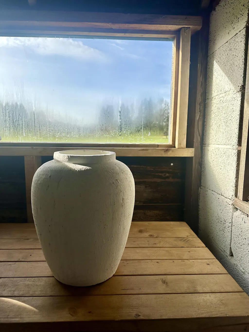 Large White Textured Terracotta Vase