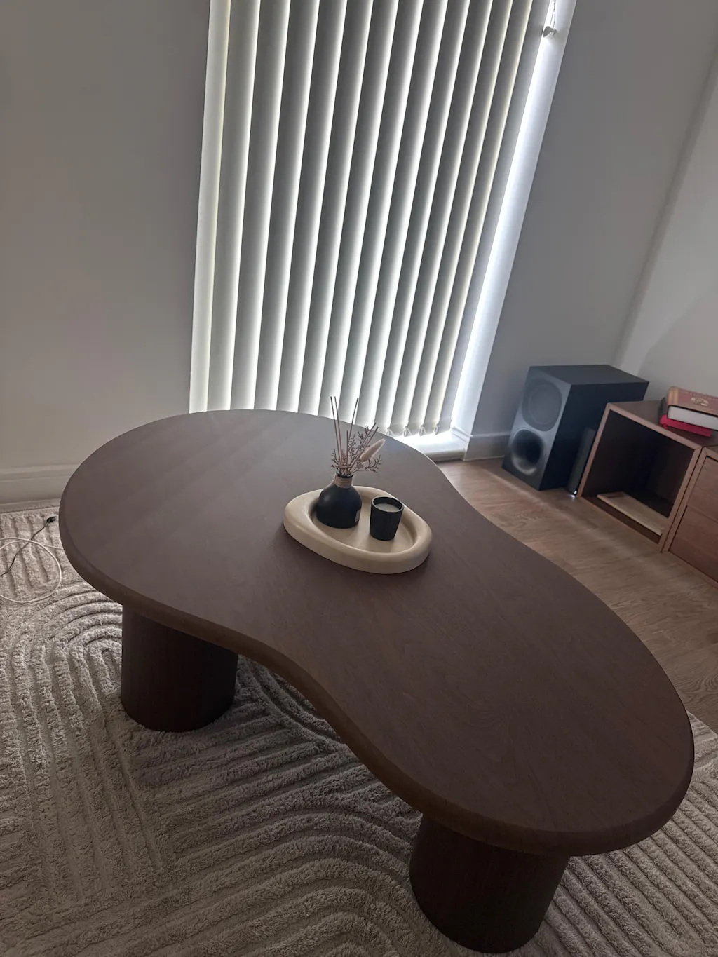 Elevate your living space with the Savanna Coffee Table. A sleek and simple coffee table that incorporates a minimalistic design approach with a sophisticated dark wood premium laminate finish and distinct irregular shape, adding a sense of unique flair to your room. Perfect for displaying your favourite decor or for keeping everyday essentials within reach.