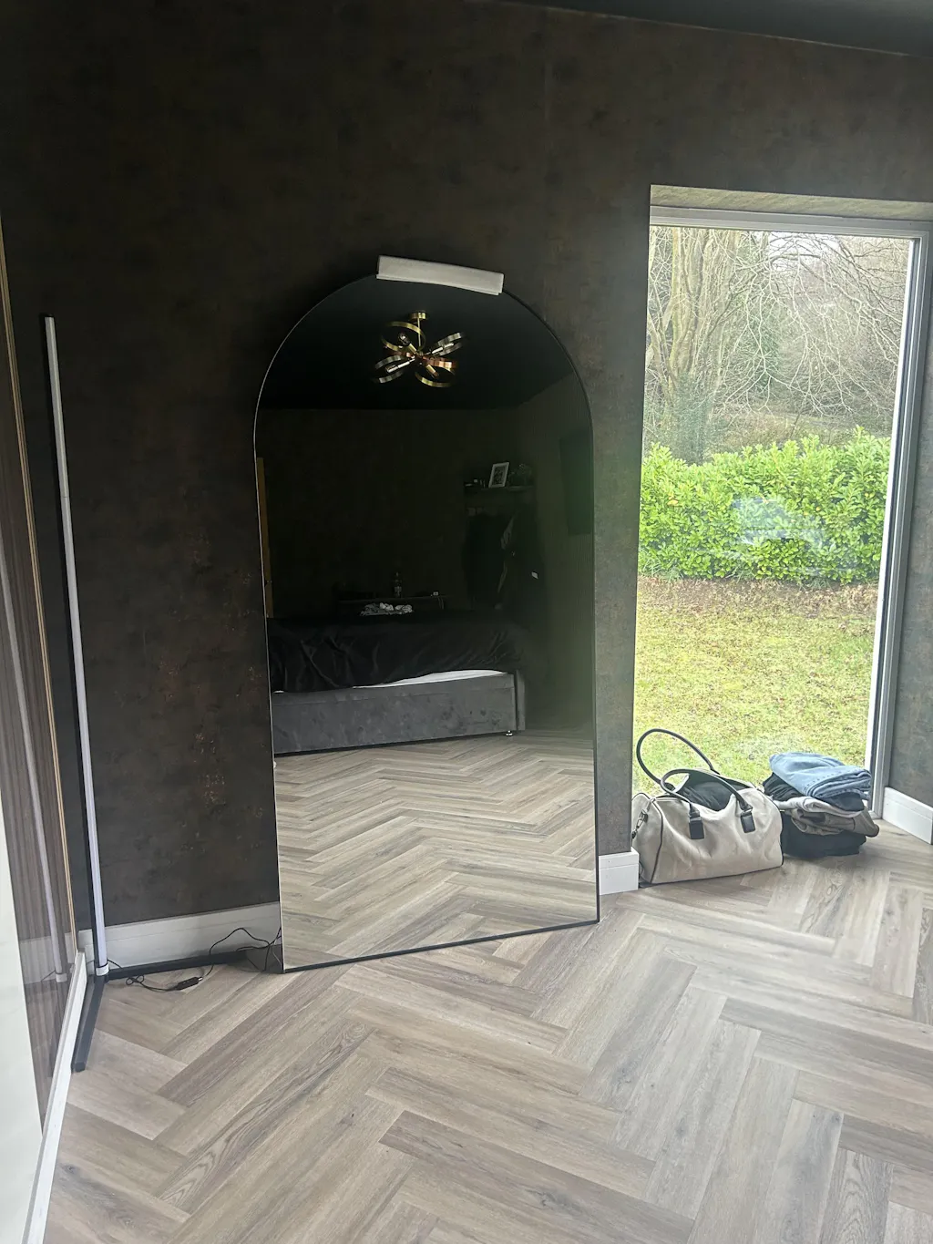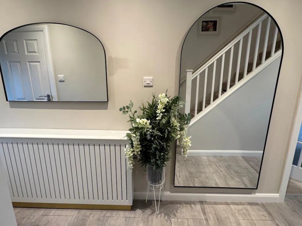 The Theo full length arched mirror boasts a low profile metal frame, offering itself as a seamless contemporary addition to your home. Hand painted onto a welded metal frame giving an industrial edge to the design.